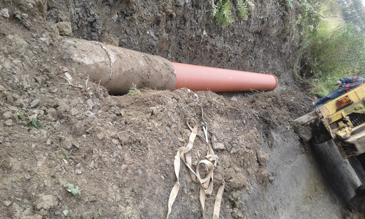 Operator koparki - Pan Staszek przez trzy dni przerzucał ziemię a efekt jego pracy to: wkopana rura przepustowa w sumie 9mb, zrobiona i utwardzona droga wjazdowa pod sam dom. Kamień z kamieniołomu woził mi Pan Zbroś(w sumie weszło 160 ton za 2850 zł) ale jeszcze trzeba będzie dowieźć ale tylko tłucznia.