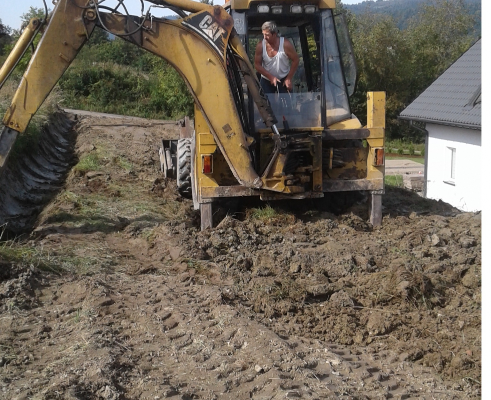 We wrześniu 2017 roku wjechała na działkę koparka aby wykonać drogę wjazdową i w miejscu budowy domu wypłaszczyć działkę.